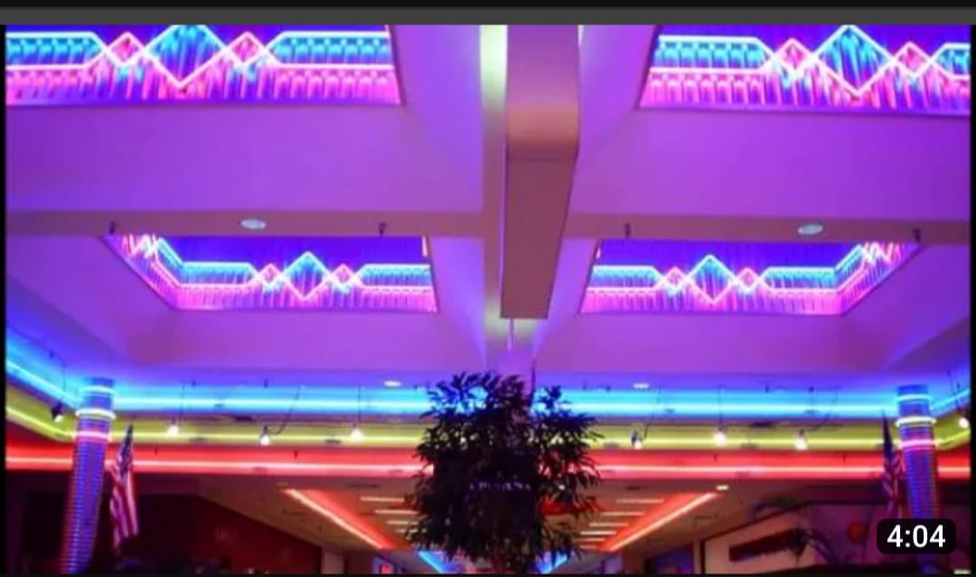 The original idea was pink and cyan neon-esque lighting completely surrounding the room, taking inspiration from photos and artistic renderings of malls in the 1990s. The below image was my primary reference for the idea.
