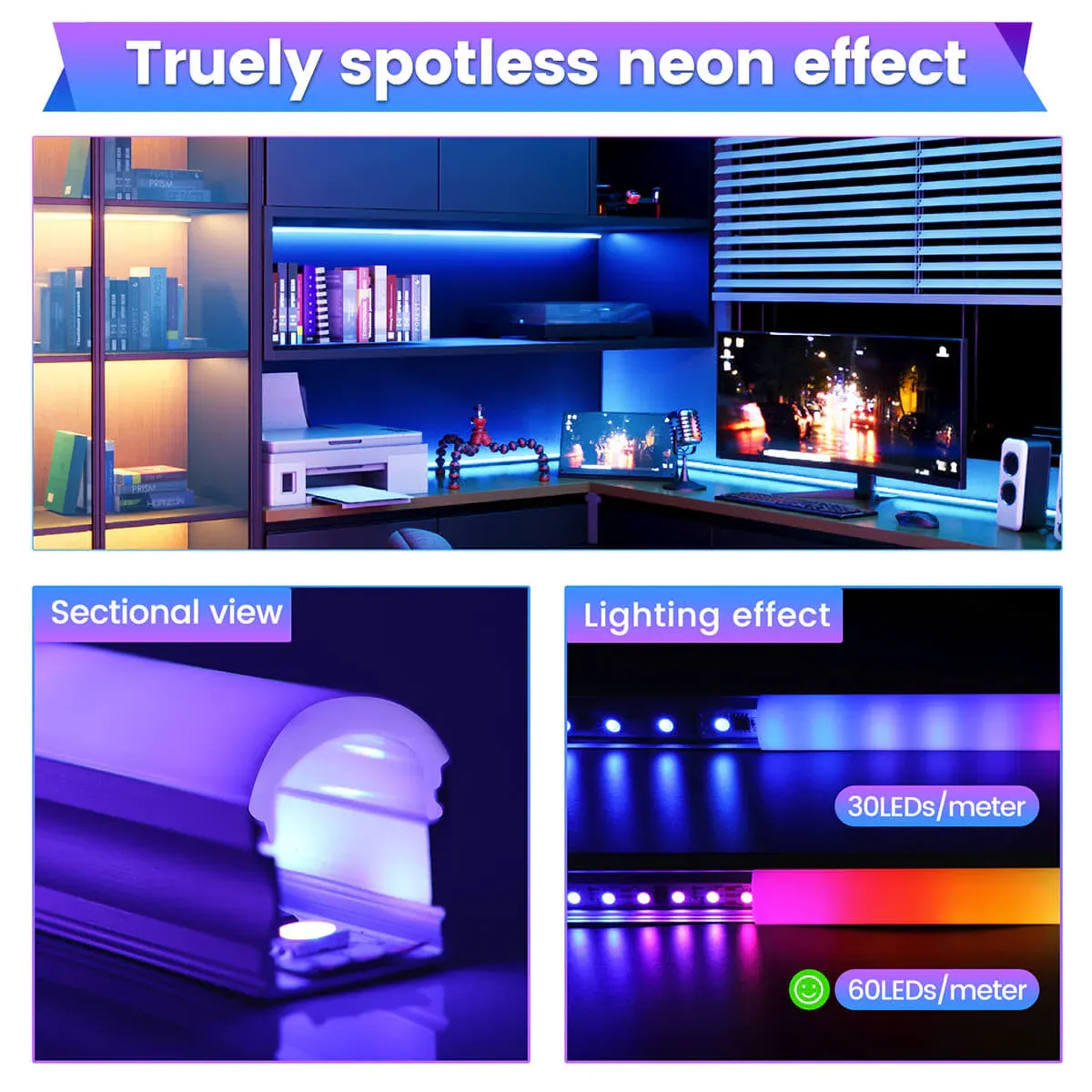 To achieve a neon look, I'd need the thickest white diffusers I could get my hands on. Here, I researched on YouTube and quickly found the Muzata U108 "Spotless" diffuser was about the only one on the market that would do what I needed. I would need LEDs spaced at about 60-per-metre for it to look right.