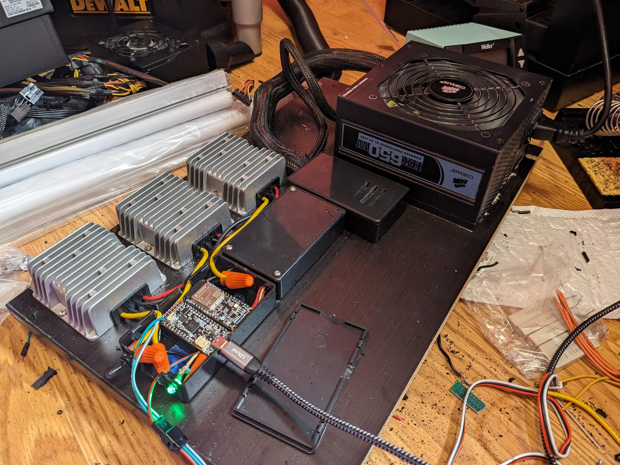 I decided to use an old 650W ATX (computer) power supply I had in storage (watch this video as a starting point). This, in itself, was not a terrible decision – while the 5v supply on the Corsair was not capable of supplying the necessary current, the 12v supply line on this Corsair would have more than enough juice for the task. Still, I was stubbornly insistent on using 5v LEDs in spite of several problems I'd encounter at this scale.
