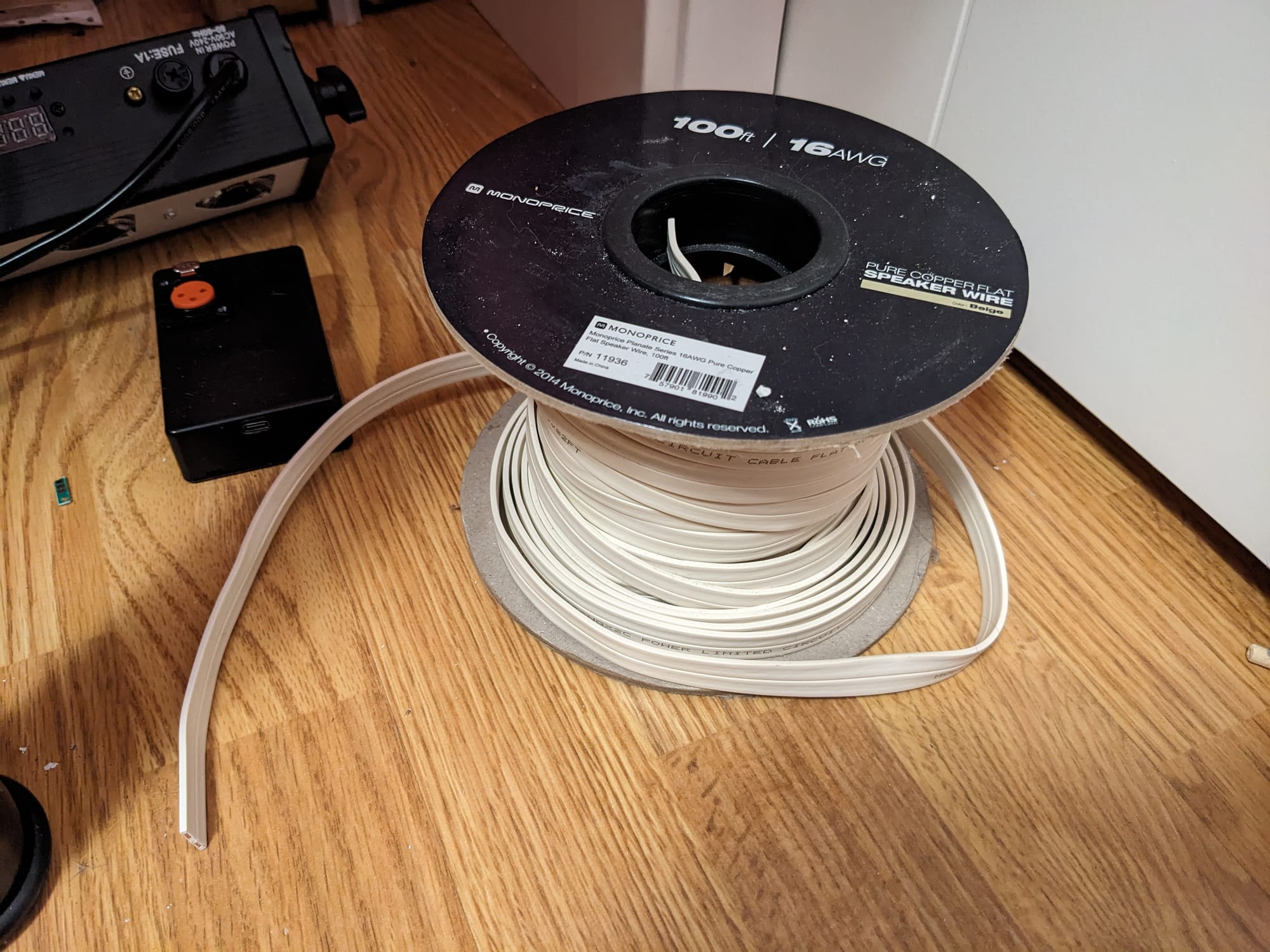 I ordered some perfectly-sized, flat, 16AWG speaker wire for running the 12v alongside the LED channels, ordered some bulky 20A buck converters, and tried to make everything work.