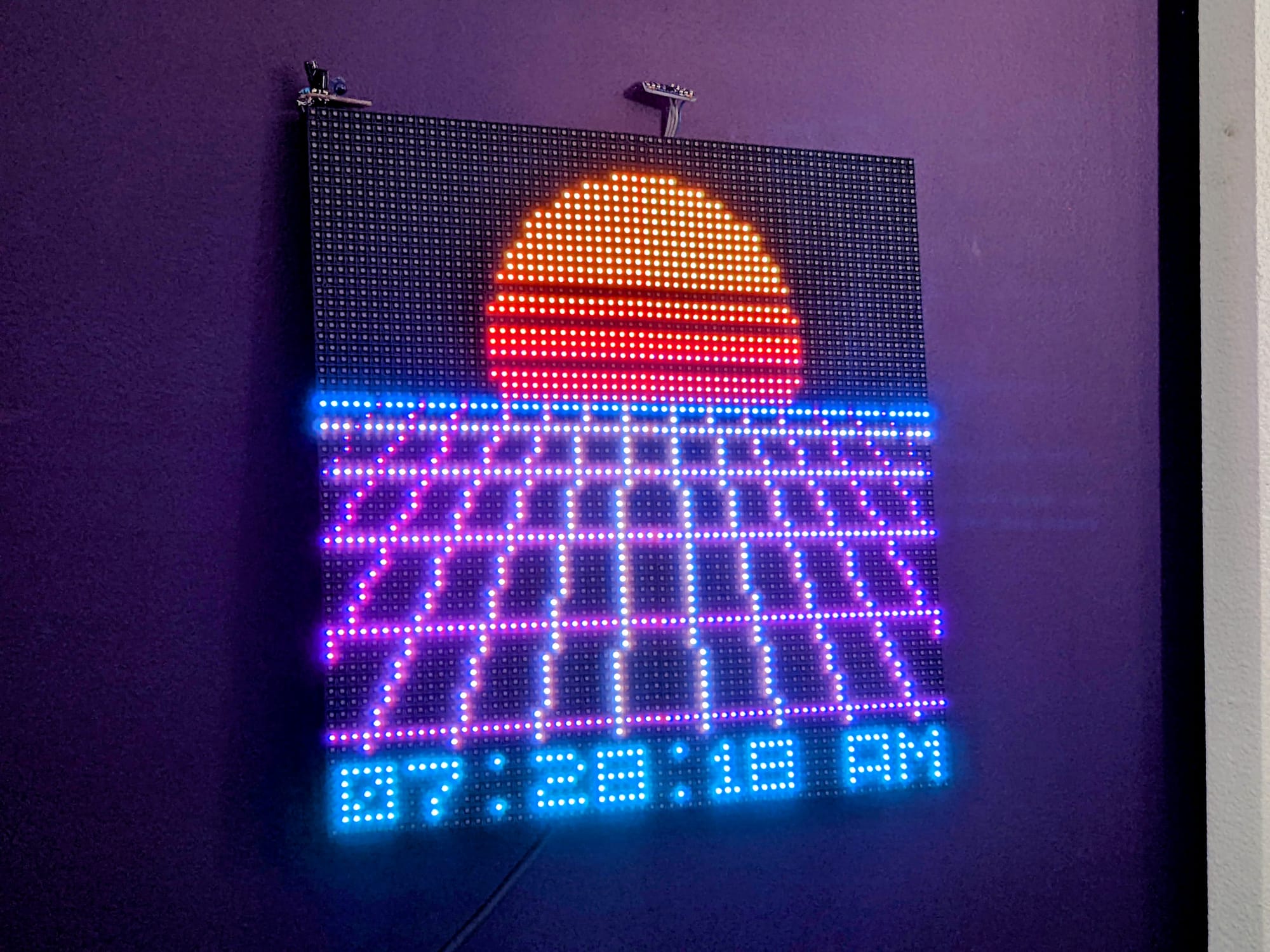 Back in 2022 I started to get into all sorts of microcontroller projects. It started with automation of my grow tent (discussed elsewhere on this blog) but quickly escalated into home automation writ large. The LED rabbit hole came mid-way through 2022 when I bought myself an Adafruit Matrix Portal microcontroller board and 64x32 HUB75 matrix display. I quickly added a second panel to make it 64x64, wired in some I2C add-on components and an IR sensor, and turned it into a temperature-monitoring, pattern-switchable synthwave clock.